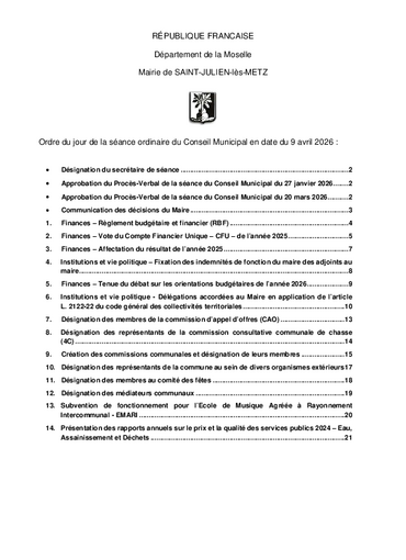 Ordre du jour du Conseil Municipal